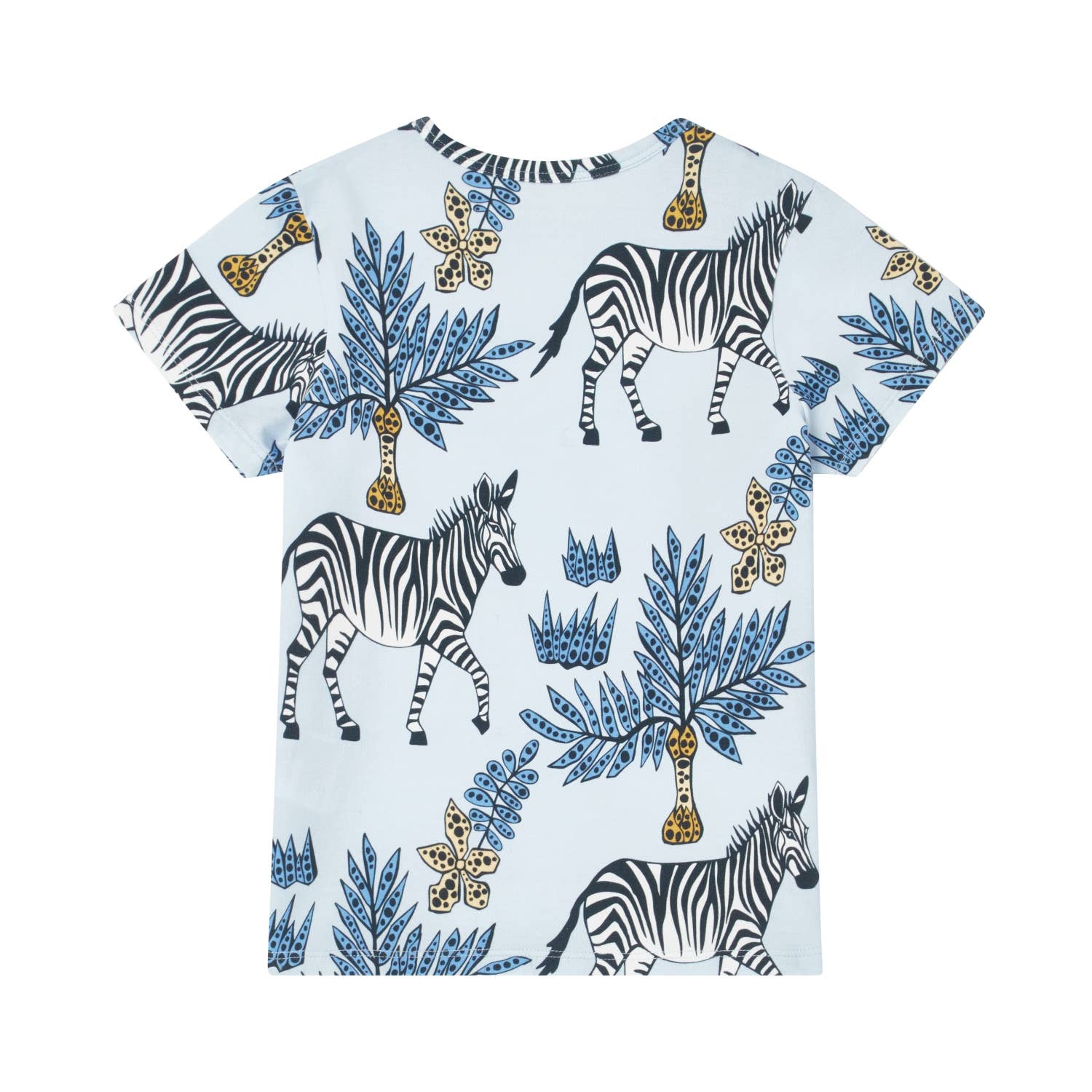 Short-sleeved T-shirt in soft organic cotton jersey with an allover zebra print on a light blue background